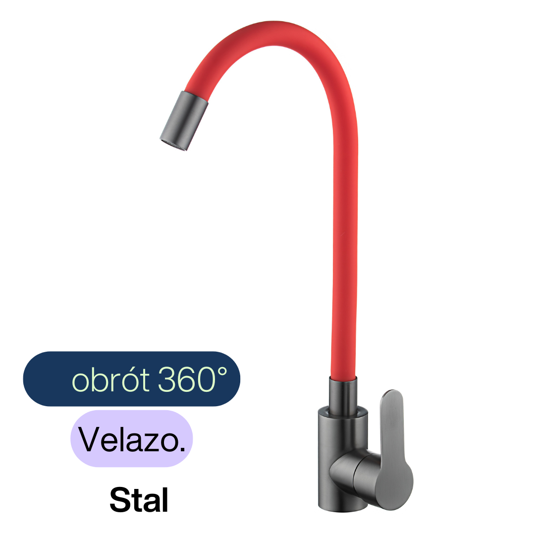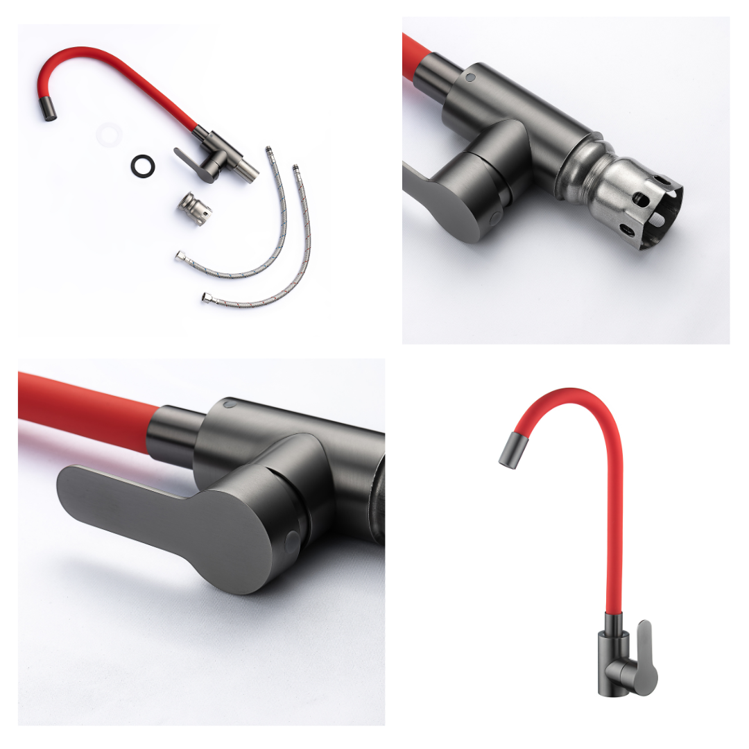 Küchenarmatur mit flexiblem Auslauf Rot Flexi/Graphit