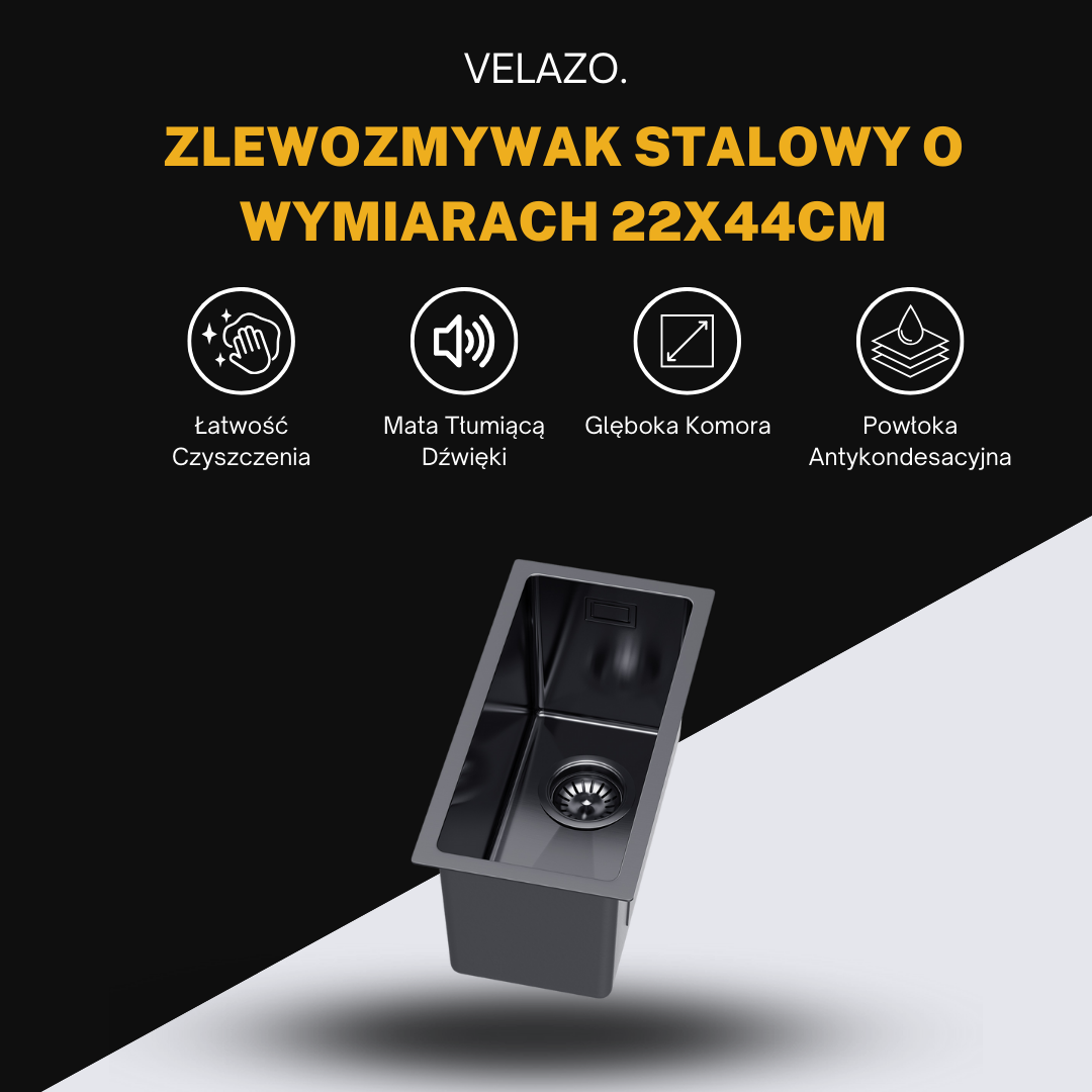 Kleines Einzelbecken-Stahlspülbecken 22 x 44 cm in der Farbe PVD GRAPHITE von VELAZO.