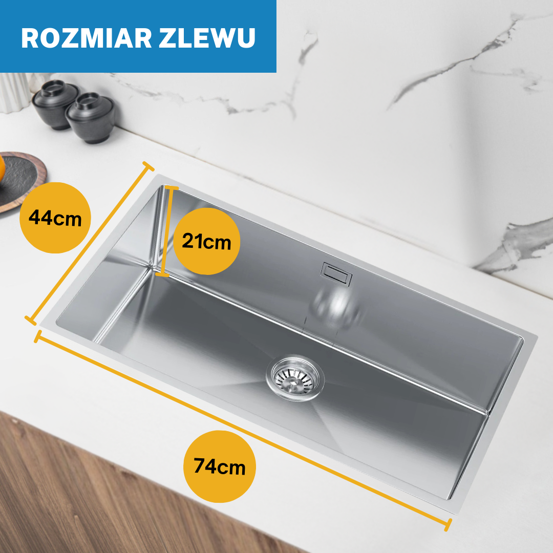 - Spülbeckenmaße: 740 mm x 440 mm x 210 mm
