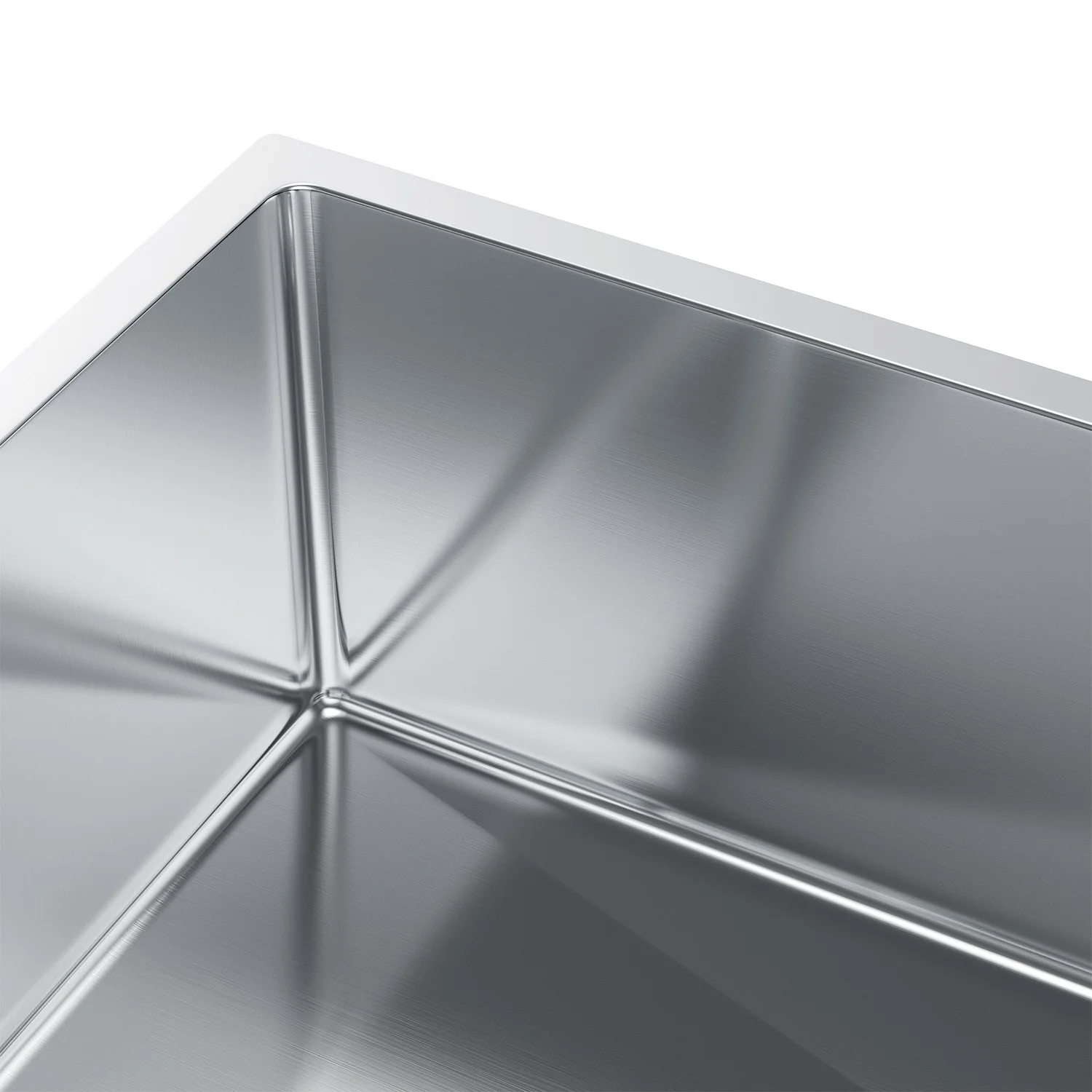 Wir stellen Ihnen unser einzigartiges Spülbecken aus Edelstahl vor, das für alle entwickelt wurde, die sowohl Wert auf Funktionalität als auch auf Ästhetik legen. Diese Spüle ist die perfekte Ergänzung für Ihre Küche und bietet ein modernes und elegantes Design. Hergestellt aus langlebigem Edelstahl mit satiniertem Finish und einer atemberaubenden PVD-Beschichtung in Edelstahlsilber passt es perfekt in moderne Küchenräume.