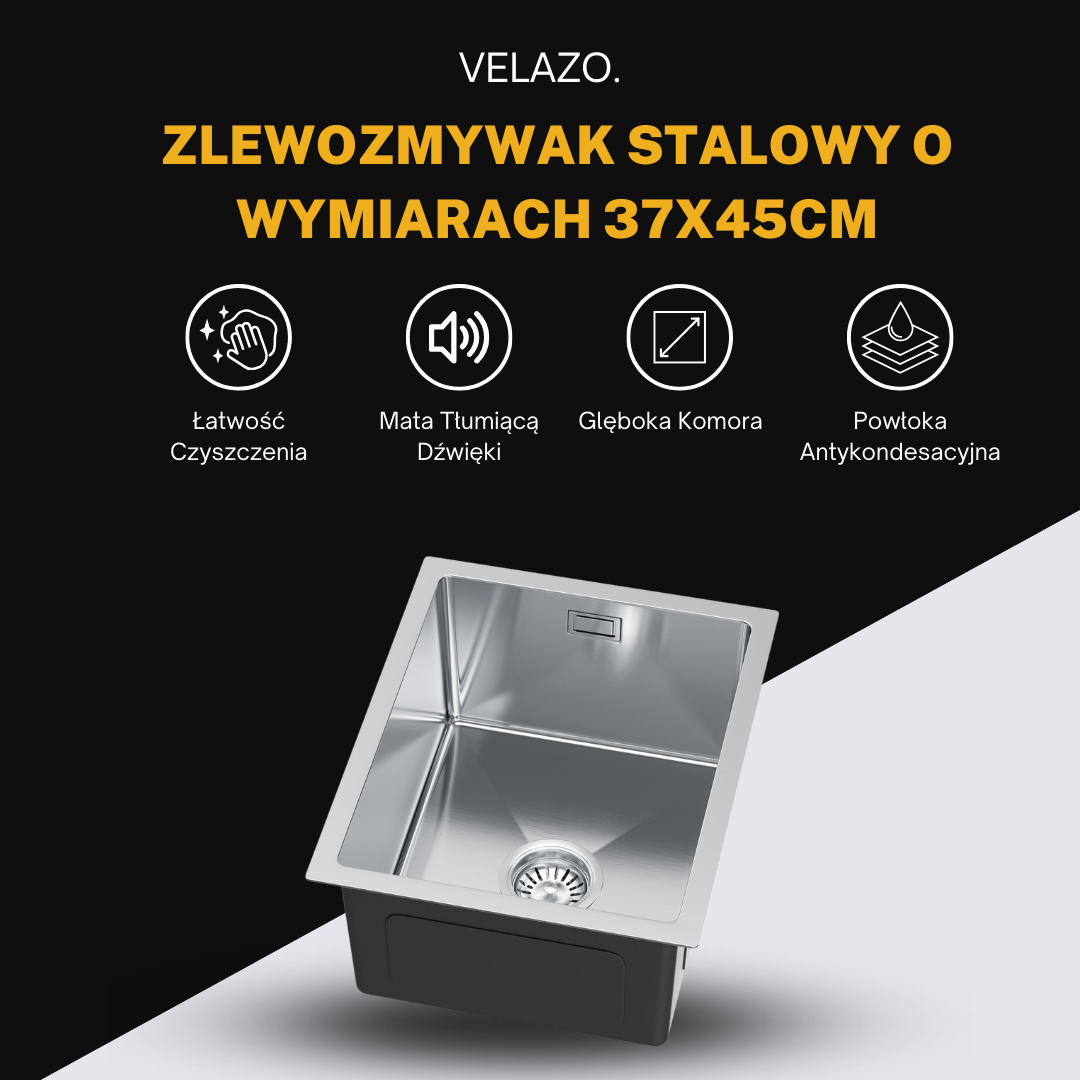 Einzelbecken-Stahlspüle 37 x 45 cm in der Farbe INOX von VELAZO.