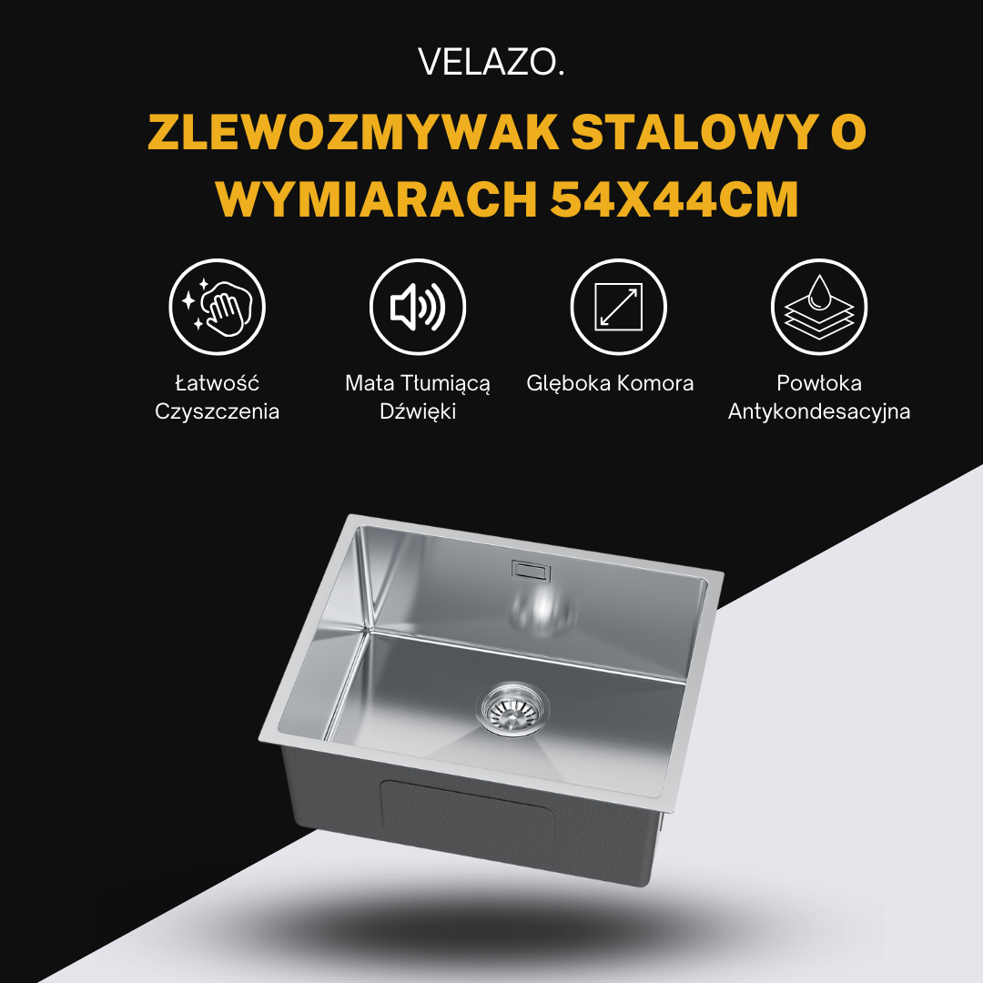 Einzelbecken-Stahlspüle 54x44cm in INOX-Farbe von VELAZO.