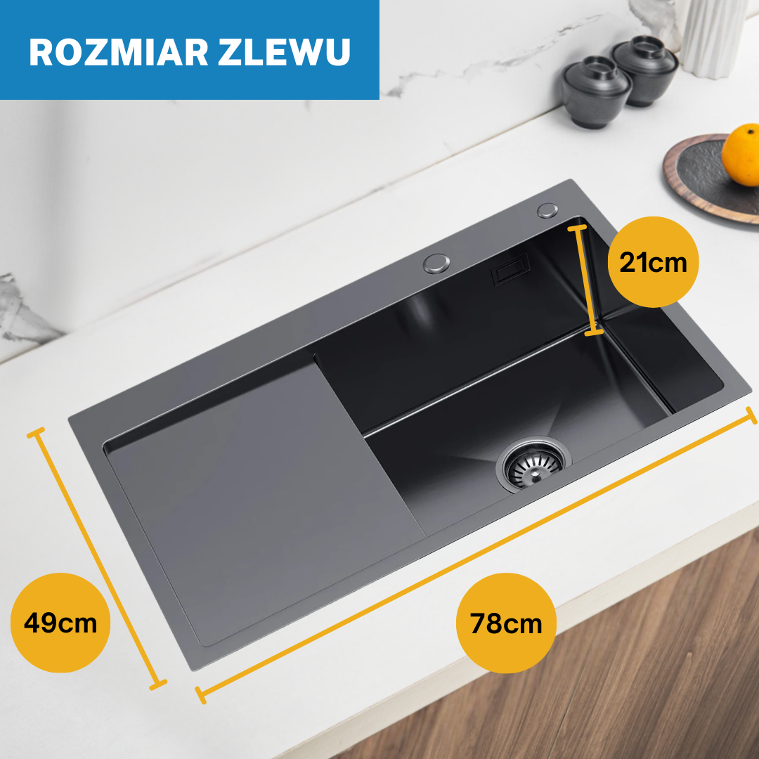 - Ästhetisches Erscheinungsbild: Das moderne und elegante Design der Spüle verleiht der Küche Stil und Attraktivität. Sein Erscheinungsbild unterstreicht den Charakter des Innenraums und macht ihn gemütlicher und ästhetischer. Die Oberfläche harmoniert mit der übrigen Einrichtung, steigert den Gesamtwert und ist eine Augenweide für Bewohner und Gäste.