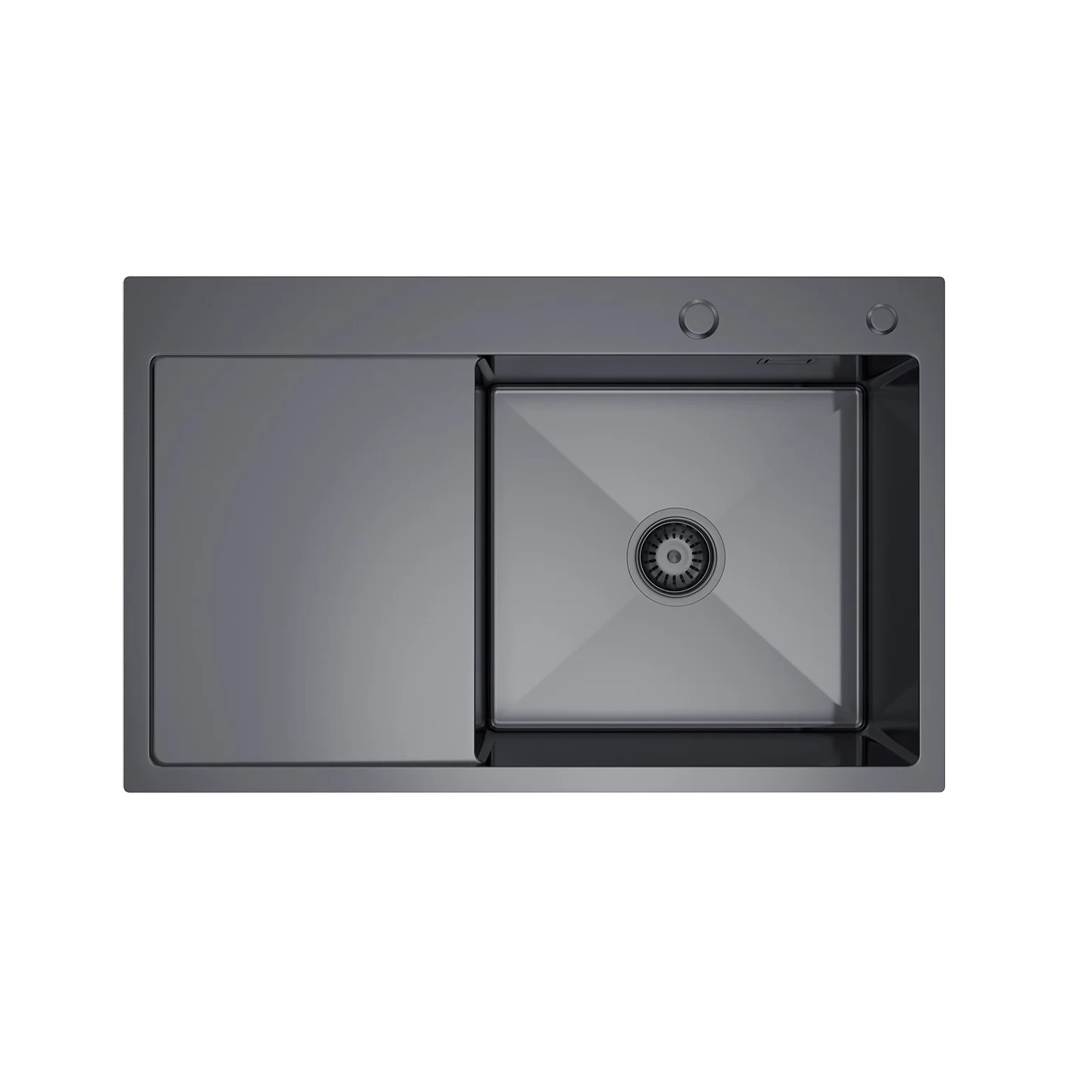 Einzelbecken-Stahlspüle mit Abtropffläche – 78 x 49 cm in PVD-Graphitfarbe von VELAZO.