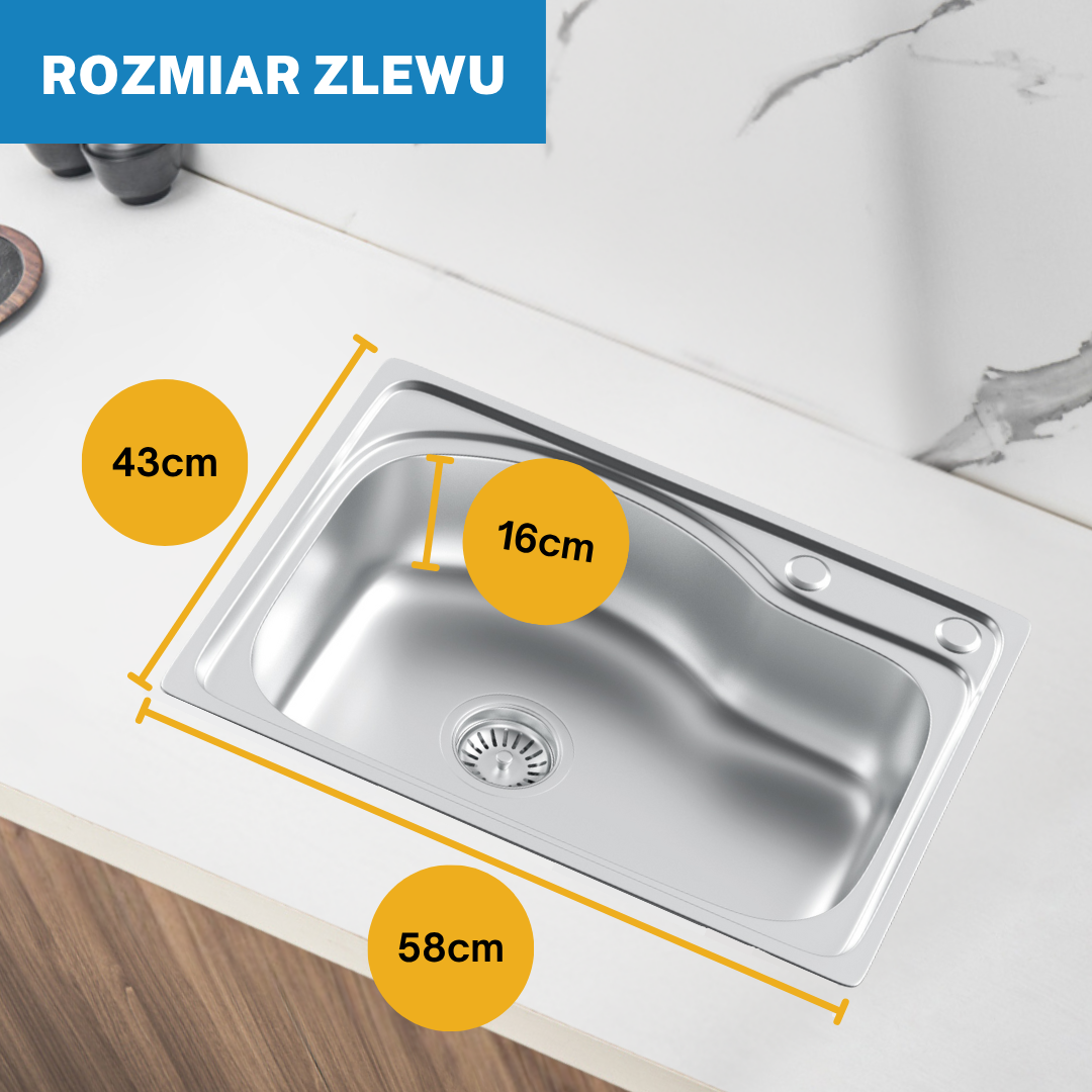 The 58 X 43 cm steel sink is the perfect solution for modern kitchens that combine style and functionality. Designed for overlay installation (from above), it will work perfectly in both smaller and larger kitchen spaces.