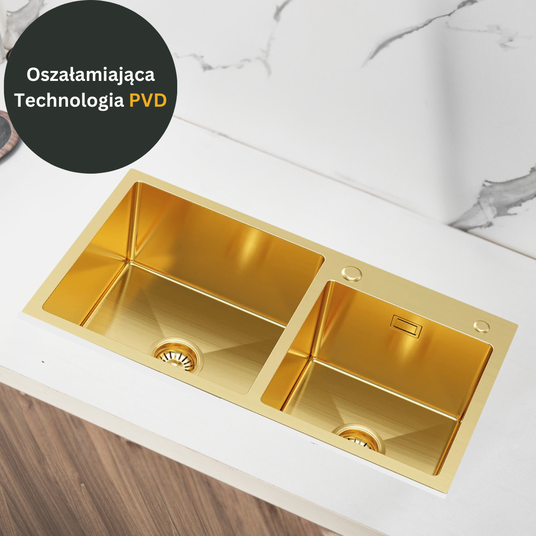 Złoty Zlewozmywak Dwukomorowy 78x45cm od VELAZO.