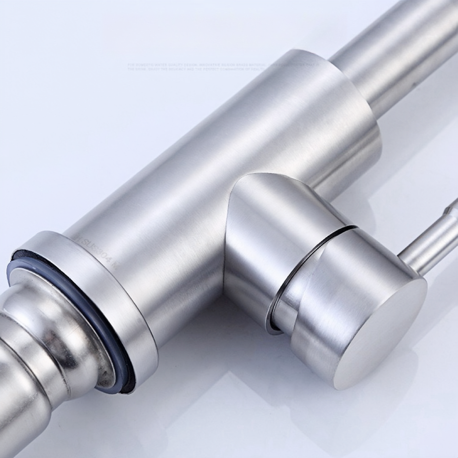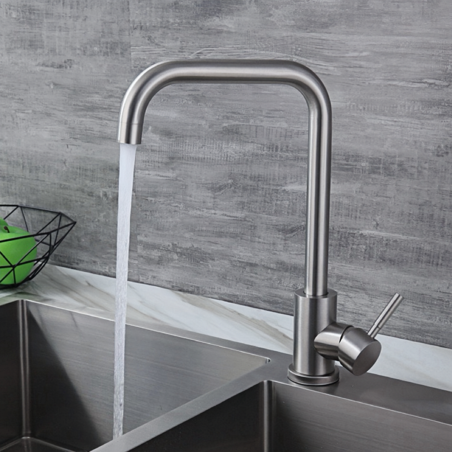 Bateria wykonana z wysokiej jakości stali nierdzewnej, odpornej na rdzę i korozję, łatwa do czyszczenia i przyjemna w dotyku, elegancka czerń, klasyczny styl, piękny i praktyczny, odpowiedni do różnych stylów dekoracji, niezbędna armatura w kuchni.