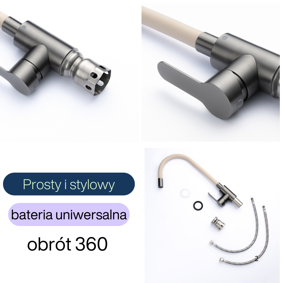 Bateria Kuchenna z Elastyczną Wylewką Beżowa Flexi /Grafit