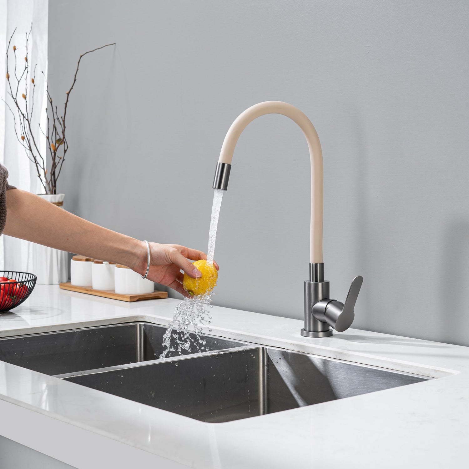 kran kuchenny✔️ Wysokiej jakości chromowany kran zlewozmywakowy wykonany ze stali nierdzewnej 304MATERIAŁY NAJWYŻSZEJ JAKOŚCI: Nasze baterie wykonane są z materiałów najwyższej jakości, co gwarantuje trwałość i odporność na uszkodzenia. kolor nie tylko wygląda stylowo, ale także jest odporny na zarysowania i długo zachowuje połysk.