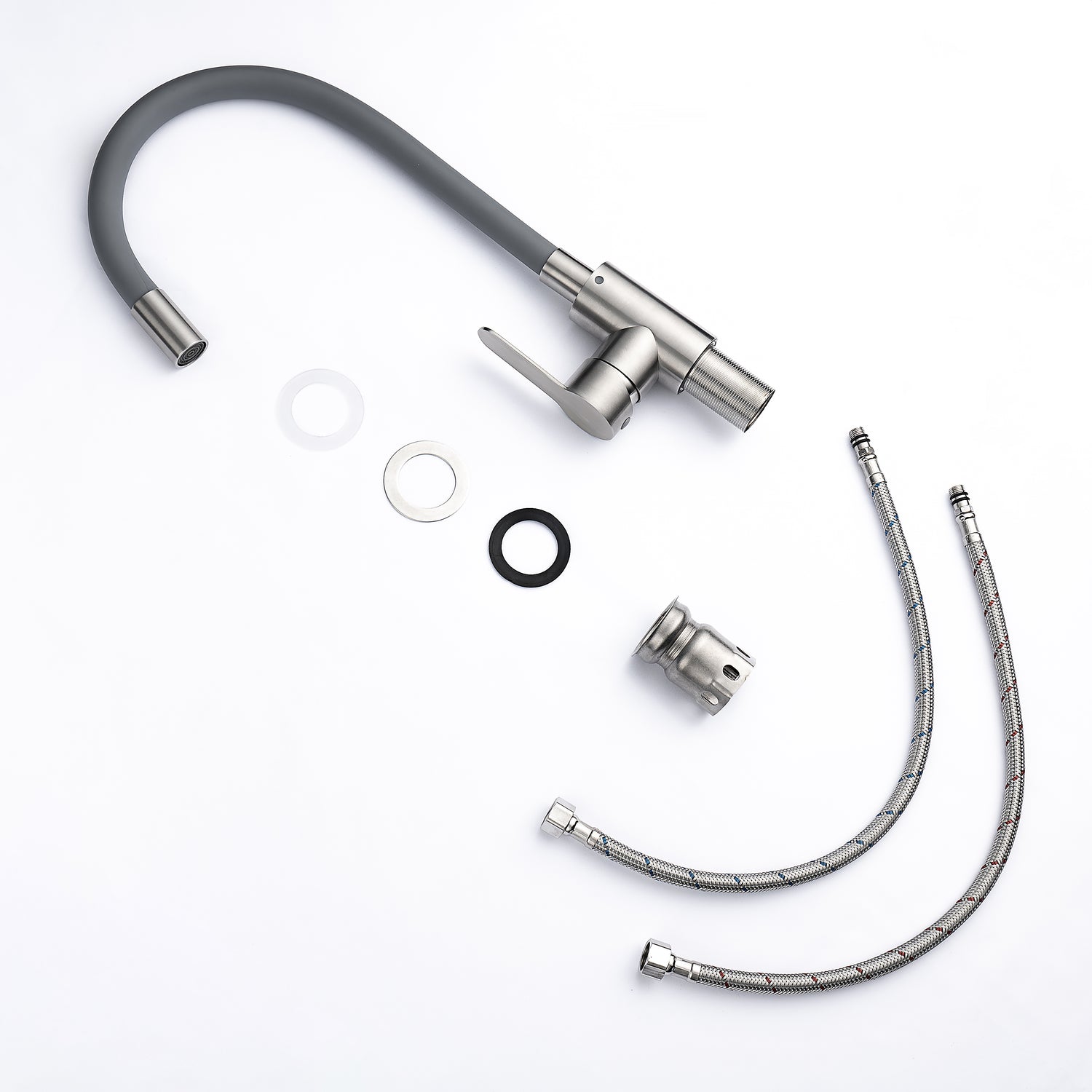 Bateria Kuchenna z Elastyczną Wylewką Grey Flexi /Inox