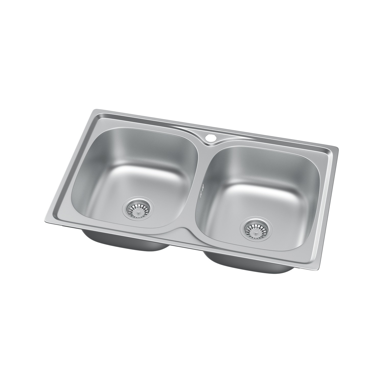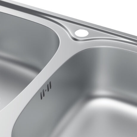 Model o wymiarach 80 x 50 cm został wykonany ze stali nierdzewnej i wyposażony w dwie komory, co ułatwia mycie, płukanie oraz rozdzielenie zadań kuchennych. Przeznaczony jest do montażu nablatowego i posiada otwór na baterię, dzięki czemu instalacja jest prosta i wygodna. Klasyczne srebrne wykończenie (INOX) pasuje do wielu rodzajów blatów i aranżacji kuchennych.