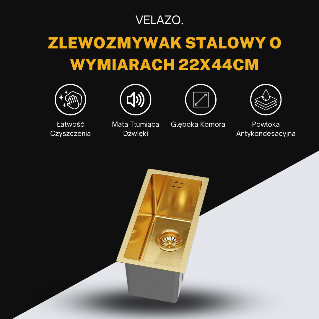 Mały Zlewozmywak Jednokomorowy Stalowy Złoty 22x44cm od VELAZO.