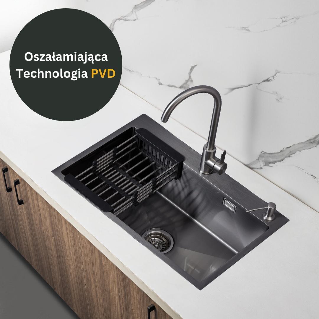 Przedstawiamy nasz wyjątkowy zlewozmywak ze stali nierdzewnej, stworzony z myślą o tych, którzy cenią zarówno funkcjonalność, jak i estetykę. Ten zlewozmywak to doskonałe uzupełnienie Twojej kuchni, oferujący nowoczesny i elegancki design. Wykonany z trwałej stali nierdzewnej z satynowym wykończeniem i oszałamiającą powłoką PVD w kolorze inox srebrnym, idealnie komponuje się w nowoczesnych przestrzeniach kuchennych.