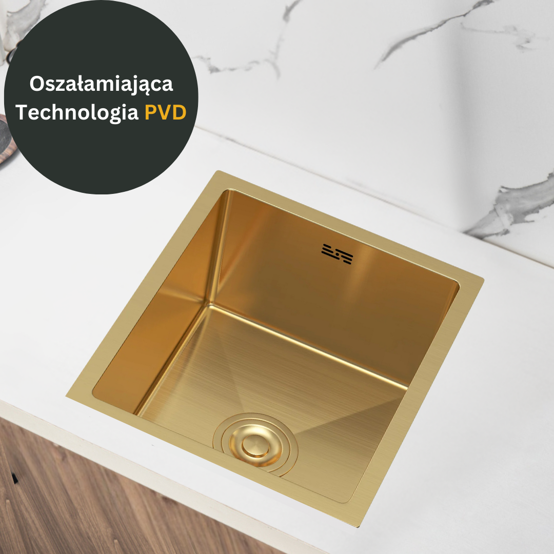 Zlewozmywak Jednokomorowy Stalowy 37x45cm w kolorze PVD Złoty od VELAZO.