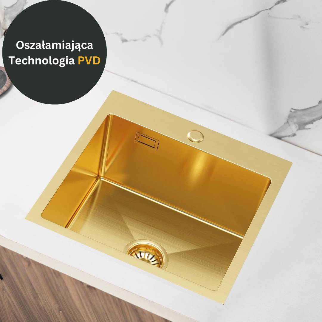 - Estetyka: Dzięki technologii PVD, zlewozmywaki mogą mieć różne kolory i wykończenia, co pozwala na dopasowanie ich do każdego stylu kuchni. Od klasycznego stalowego wykończenia, po złoto, brąz czy czarny mat - wszystko jest możliwe!