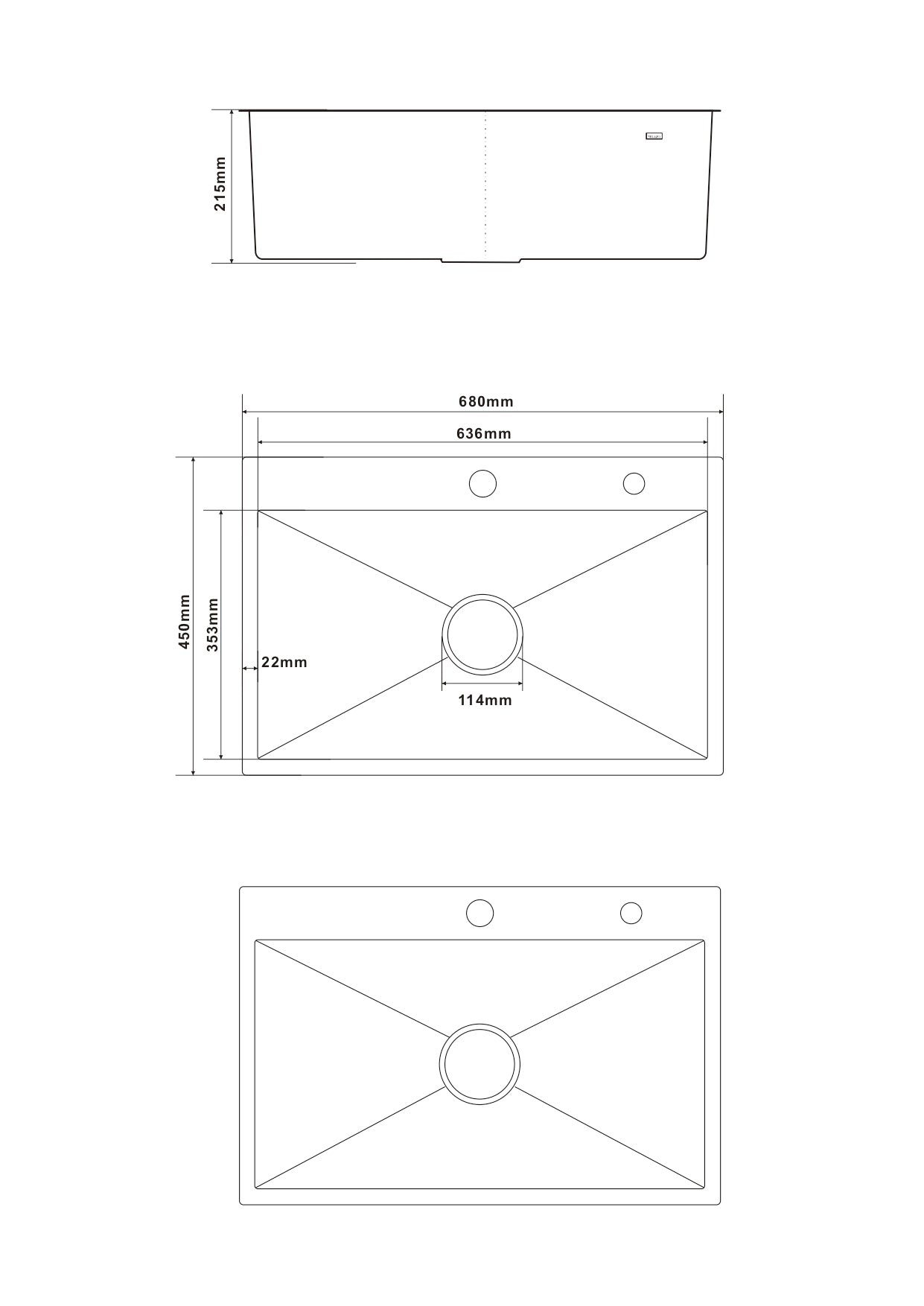 - Wymiar zlewozmywaka: 680 mm x 450 mm x 215 mm
