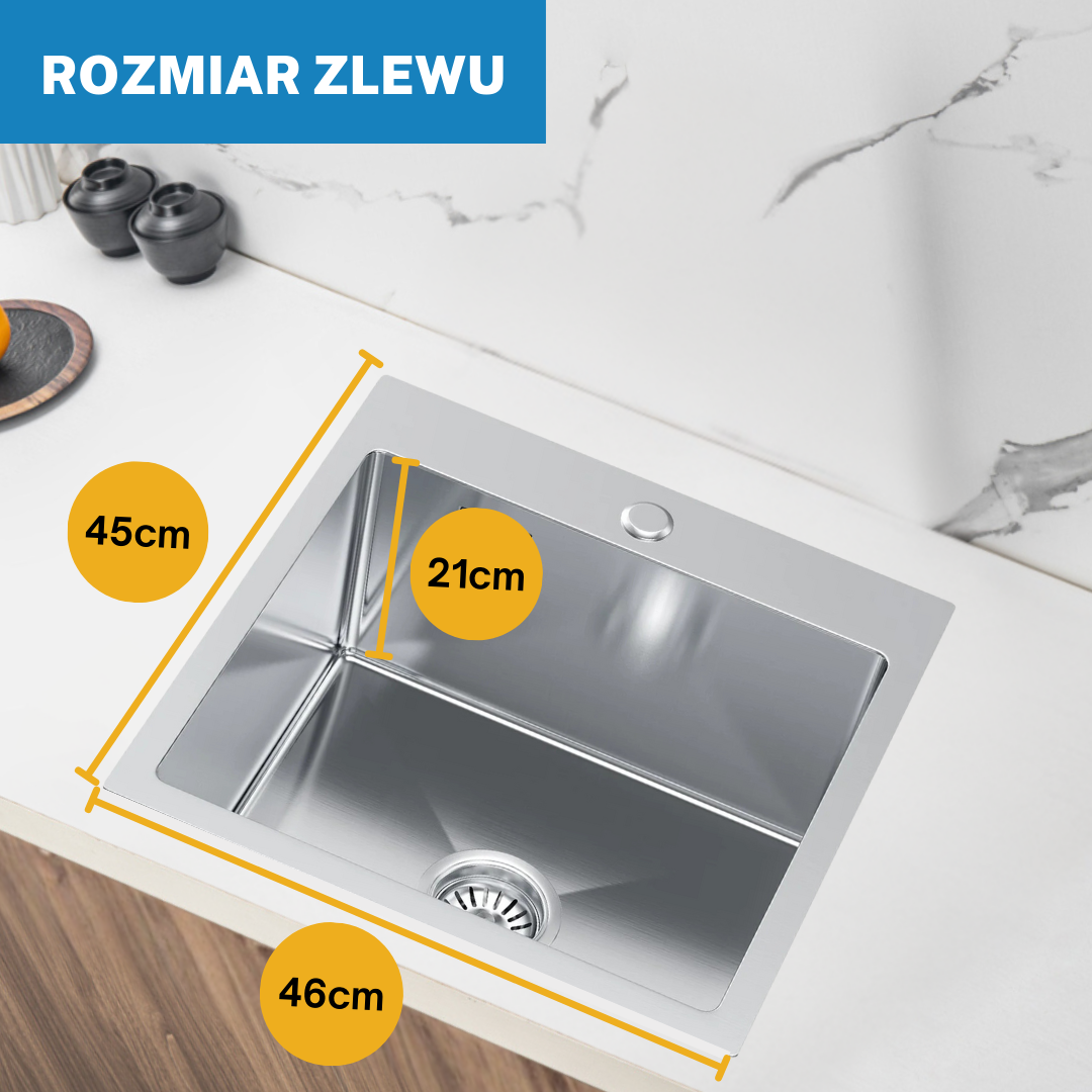 - Wymiar zlewozmywaka: 460 mm x 450 mm x 210 mm