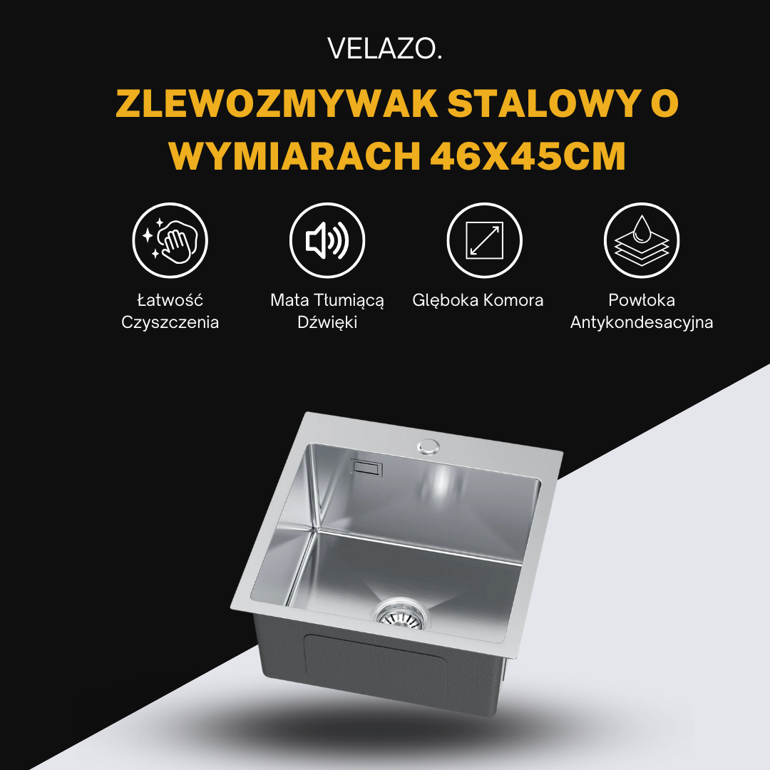 Zlewozmywak Stalowy 46x45cm w kolorze INOX od VELAZO.