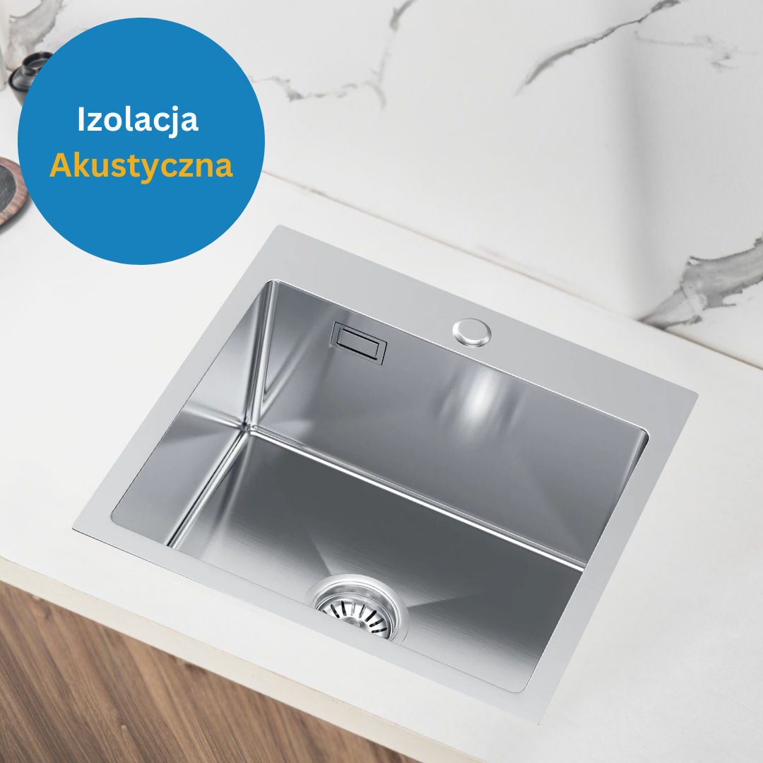 - Mata Tłumiącą Dźwięki: Redukcja hałasu podczas korzystania ze zlewozmywaka zwiększa komfort w kuchni dzięki zastosowaniu maty tłumiącej dźwięki. Spadająca woda i uderzenia naczyń są mniej słyszalne, co sprawia, że praca w kuchni staje się cichsza i bardziej przyjemna.