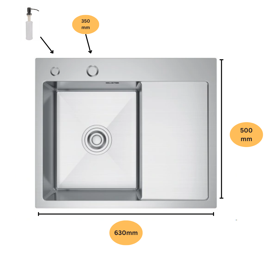 Wymiar zlewozmywaka: 630 mm x 500 mm x 215 mm