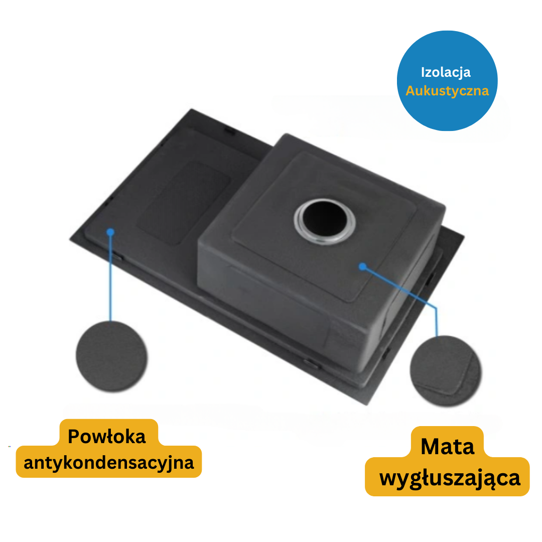 ✅ Izolacja akustyczna: Specjalna mata tłumiąca dźwięki zapewnia spokojne doświadczenie w kuchni.