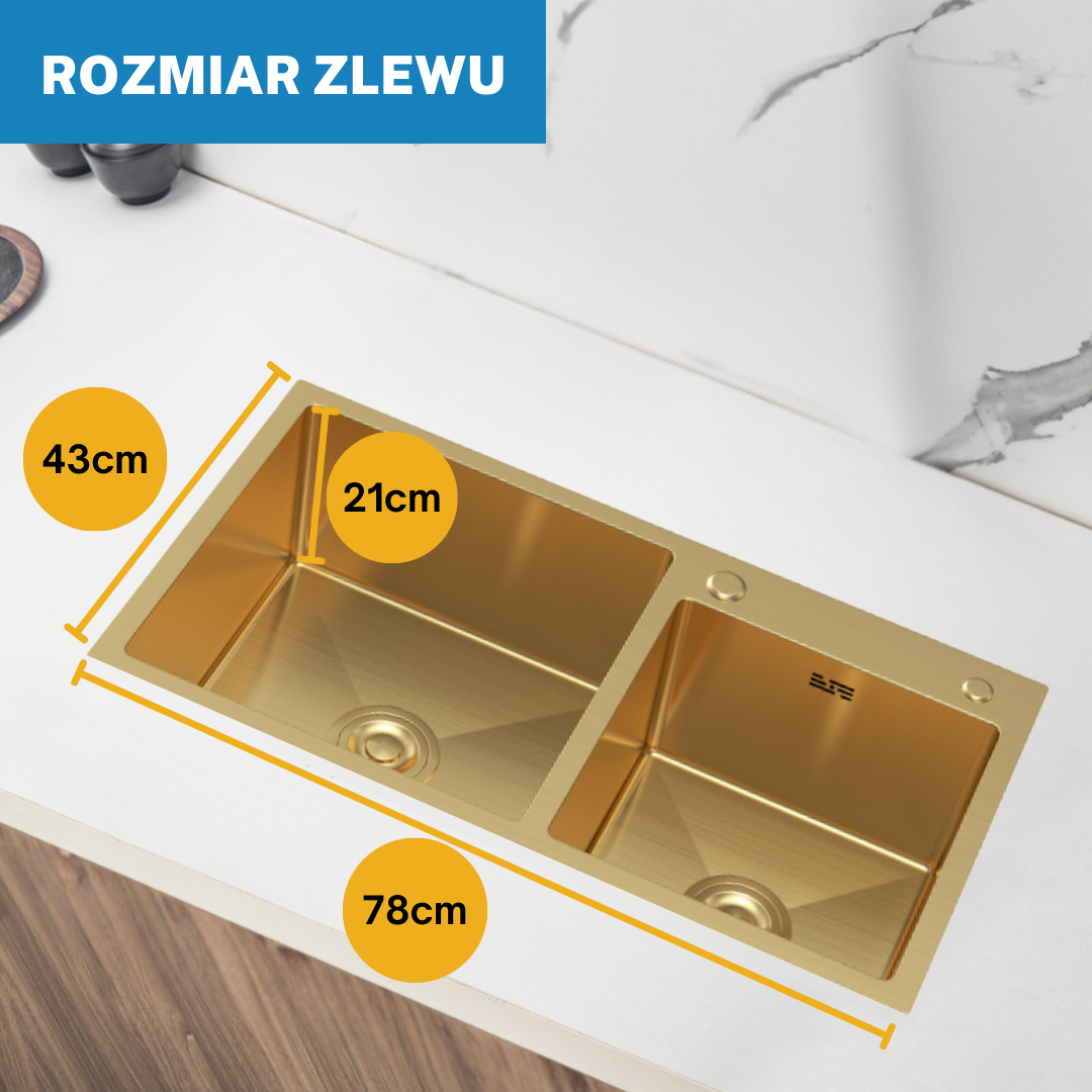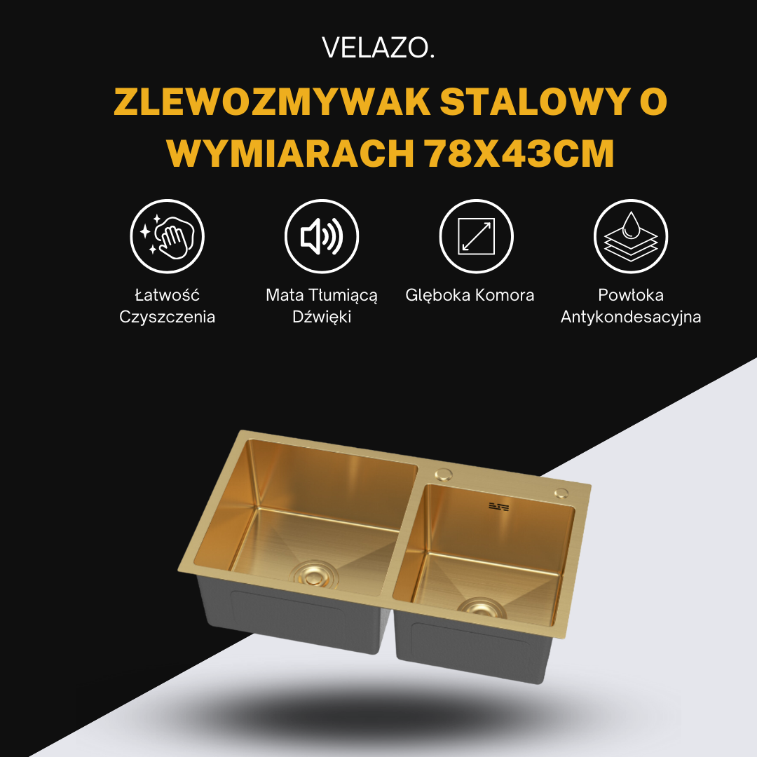 Złoty Zlewozmywak Stalowy Dwukomorowy 78X43cm od VELAZO.
